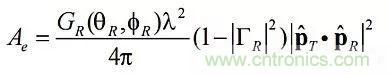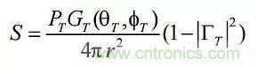 其中: PT是發射功率; r是天線范圍或距離; ΓT是發射器反射系數; GT(θT,ΦT)是與角度有關的發射器增益。