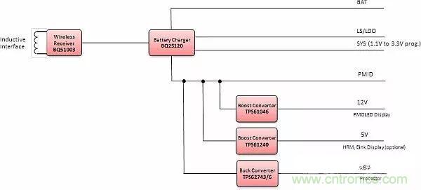 TI推出了一種可行、可擴展的可穿戴設備用電源解決方案,可以用于手表、手環等可穿戴設備(見參考文獻“Power Management Reference Design for a Wearable Device with Wireless Charging Using the bq51003 and bq25120”)。與這種方案類似的參考設計使設計人員能夠發揮他們的智慧和創造性,為可穿戴設備提供創新的供電技術,見圖15。