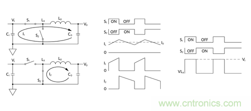 圖 5:Buck 調(diào)節(jié)器原理簡圖及其工作波形傳導(dǎo) EMI。