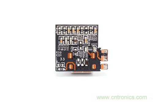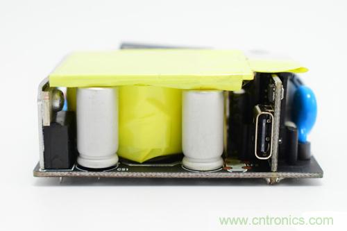 二次側(cè)低壓輸出濾波為兩枚固態(tài)電容,Type-C輸出母座安裝在一塊獨立PCB小板上。