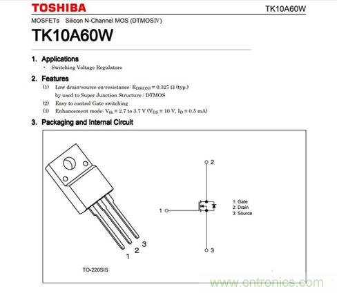 一次側(cè)開關(guān)管為 TK10A60W,N-MOSFET,來自東芝。
