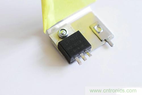 分離塑膠封套后,可見PCB小板上有IC和MOSFET各一。