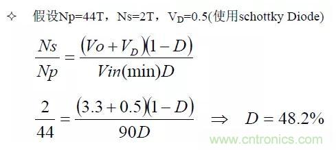 由以下公式可決定Duty cycle ,Duty cycle的設(shè)計(jì)一般以50%為基準(zhǔn),Duty cycle若超過50%易導(dǎo)致振蕩的發(fā)生。