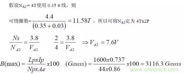 依據(jù)變壓器的圈比關(guān)系,可決定輔助電源的圈數(shù)及電壓。