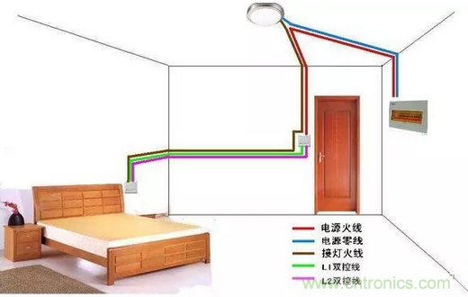 臥室雙控的布線圖