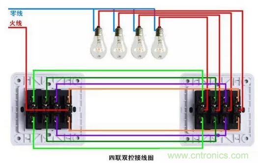 單控,雙控,三控,四控開關(guān)接線圖