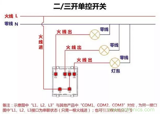 二三開單控開關(guān)接線圖