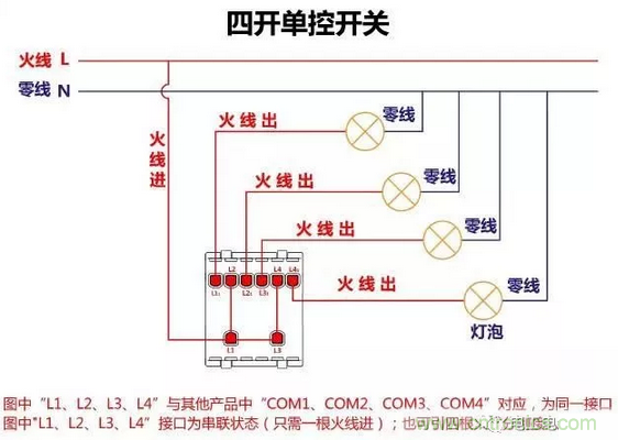四開單控開關(guān)接線圖