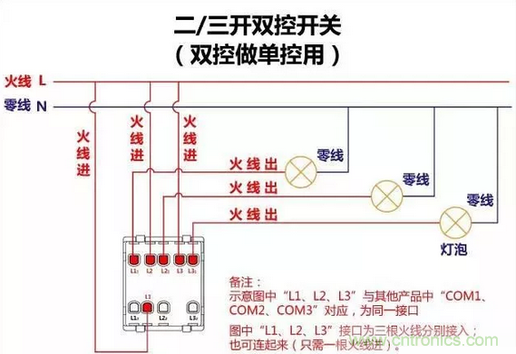 三控開關(guān)的布線