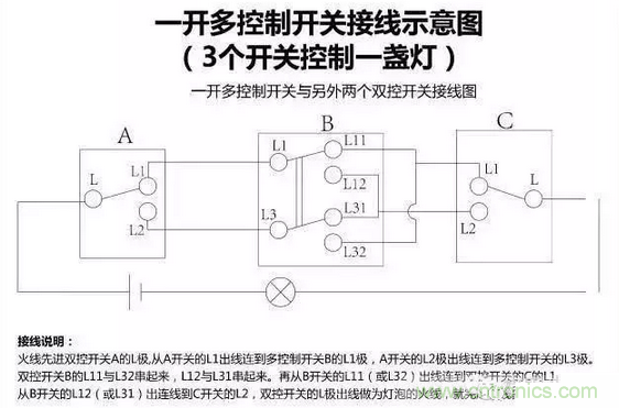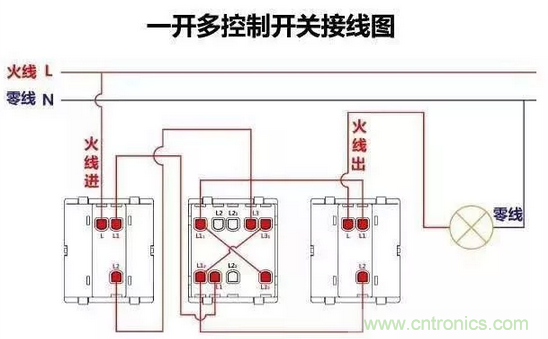 一開多控開關(guān)接線圖