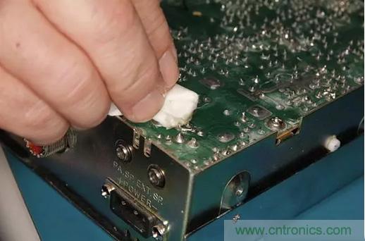 接下來修剪多余的電線至焊點處,并用助焊劑清潔劑對焊點進行清理。