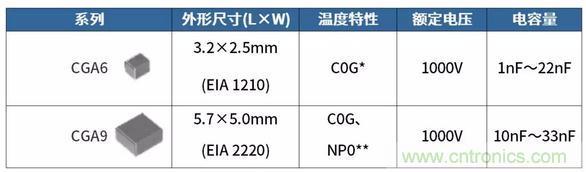 TDK提供車載等級及CGA系列的中耐壓MLCC(額定電壓100~630V)、高耐壓MLCC(額定電壓1000V以上)等各類MLCC。其中,額定電壓為1000V、溫度特性為C0G特性/NP0特性、電容量為1nF~33nF的產(chǎn)品擁有以下類型。除了磁共振式無線充電共振電容器之外,在時間常數(shù)電路、濾波器電路、振蕩電路等在有高精度的要求時,需要實現(xiàn)小型化和SMT化的情況下可以用于替換薄膜電容。同時,為了進一步提高可靠性,對于基板彎曲導(dǎo)致的元件體開裂、熱沖擊導(dǎo)致的焊錫開裂以及振動等外部環(huán)境因素具有較強耐受性的金屬支架電容及樹脂電極品系列也一應(yīng)俱全。