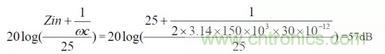 傳導發射測試設備內部的去耦網絡(LISN)內阻Zin 標準為50Ω。則耦合電容C7 與測試設備去耦網絡的內阻Zin 對騷擾電平的衰減為: