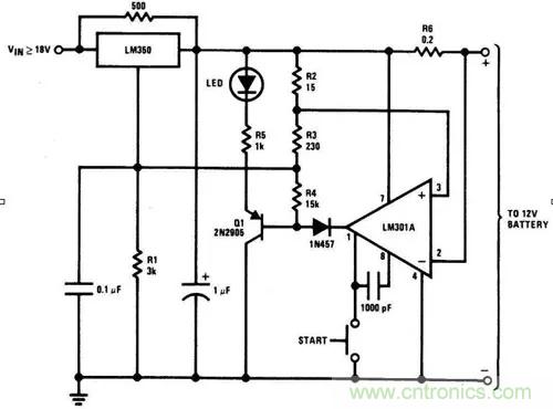對于膠體電介質(zhì)鉛酸蓄電池來說,該電路是一個高性能的充電器。該充電器能夠迅速地為電池充電,且當電池充滿時,它可迅速地斷開充電。最開始的充電電流限制在2A。隨著電池電流和電壓的增加,當電流增加到150mA時,充電器就會調(diào)整至較低的漂浮電壓,以防止過度充電。