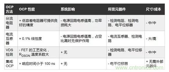 表:GaN HEMT 功率級的 OCP 方法選擇匯總。對于不熟悉該技術的設計人員來說,選擇集成 OCP 的功率級是最簡單的解決方案。(圖片來源:Texas Instruments)