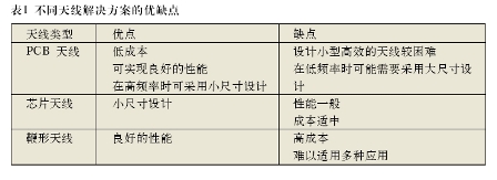 在選擇天線時,天線的尺寸、成本以及性能是最重要的考慮因素。對于短距離無線設備而言,三種最常見的天線為PCB天線、芯片天線以及鞭形天線。這三種天線的優缺點如表1所示。