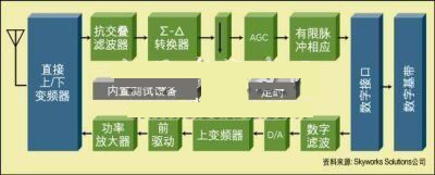 高動態(tài)范圍A/D靠一個高速采樣時鐘提供時鐘信號,所以在設(shè)計和布局階段必須仔細(xì)考慮基底噪音及RF前端的耦合噪聲。來自RF采樣時鐘諧波的干擾如果處在通道帶寬之內(nèi)的話,可能會降低接收器的性能。一旦信號實(shí)現(xiàn)了數(shù)字化,一個公共的硬件平臺可用來提取期望信號,同時阻止干擾信號。幾項射頻功能,如直流偏移抵消、自動增益控制和頻率偏移校正等,在實(shí)際的數(shù)據(jù)解調(diào)之前可以作為射頻的一部分被執(zhí)行。這減輕了對DSP指令運(yùn)算速度方面的要求,同時使無線電控制方式更加靈活。