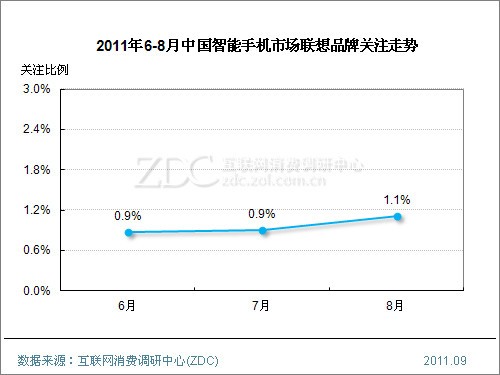 (圖)2011年6-8月中國智能手機市場聯想品牌關注走勢
