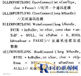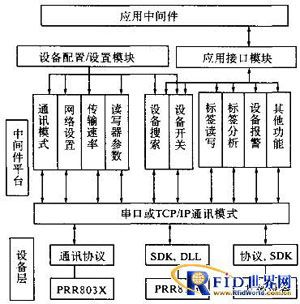 (1)底層數據通訊接口組件:負責數據通訊的鏈路層和物理層,是讀寫器與應用軟件通訊的物理基礎,在應用邏輯上,與應用通訊協議無關。所以,底層數據通訊應獨立設計相對固定的接口,與高層應用分離。