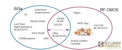 采用SiGe技術的優勢之一是提高集成度。設計人員可在功率放大器周圍集成更多的控制電路,這樣,最終的器件就更加節省空間,從而為集成更多無線功能的提供令了潛力。例如,采用 SiGe技術,設計人員就可以將功率放大器和 RF 電路集成在一起,卻不會影響功率放大器的效率,從而延長手機電池的壽命。目前,采用SiGe技術推出射頻功率放大器的公司包括:SiGe半導體公司、 Maxim、飛思卡爾、Atmel等公司。利用SiGe BiCMOS制造工藝進行代工的供應商主要是IBM以及臺積電(TSMC)。