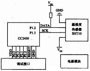 在此采用深圳金圖旭昂有限公司的TSZ-CC2430開發(fā)系統(tǒng),移植美國密西西比大學的精簡ZigBee協(xié)議棧,以CC2430芯片為核心設(shè)計一種用于環(huán)境監(jiān)測的溫濕度傳感節(jié)點,通過軟硬件設(shè)計方法實現(xiàn)傳感節(jié)點的低功耗目標。