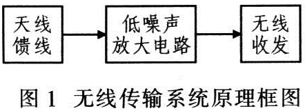 圖1為無(wú)線傳輸系統(tǒng)原理框圖。接收端的功率放大電路模塊由于信道具有衰減特性,經(jīng)遠(yuǎn)距離傳輸?shù)竭_(dá)接收端的射頻信號(hào)電平多是μV數(shù)量級(jí),因此需放大微弱的射頻信號(hào)。同時(shí),信道中還存許多干擾信號(hào),即噪聲,所以該系統(tǒng)設(shè)計(jì)應(yīng)采用低噪聲的射頻功率放大電路。