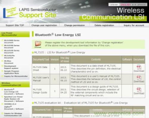 另外,LAPIS Semiconductor開設了無線通信LSI系列的技術支持網站。(URL: https://www.lapis-semi.com/cgi-bin/MyLAPIS/regi/login.cgi)