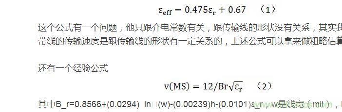 下面列舉幾個(gè)微帶線傳輸速度的經(jīng)驗(yàn)公式