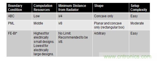 最后對三種輻射邊界條件的區別總結歸納如下表: