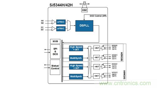 Si5344H和Si5342H時鐘提供最佳的頻率靈活性和無與倫比的50fs RMS抖動性能。這些時鐘芯片簡化了器件采購過程,可采用交貨時間短至兩周的單個時鐘IC解決方案,來替代多個需定制的、較長交貨時間的VCSO。憑借抖動衰減PLL、高頻率輸出驅動器、分數(shù)頻率合成和數(shù)字控制振蕩器(DCO)技術,Si534xH系列產品為相干光收發(fā)器應用提供所需的全部時鐘功能,與競爭對手解決方案相比降低了40%的占用面積及40%的功耗。
