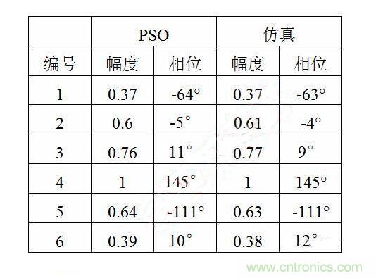 從表1中可以看出,該功分網絡較好的實現了PSO優化出的激勵幅相值。