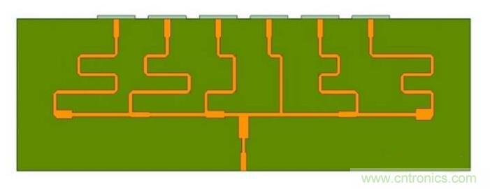 微帶天線具有低剖面,重量輕,便于加工,成本低廉,易于與微波電路集成等優點;將微帶貼片天線串聯饋電組成駐波線陣,能夠滿足高增益低副瓣等要求,適合用作毫米波防撞雷達天線。
