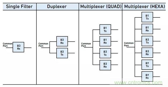 雙工器、三工器、四工器,甚至是六工器,這類設備統稱為多路復用器。多路復用器可將多個濾波器整合在一個器件中,從而幫助設計人員節省空間、簡化設計、滿足性能要求,同時還能避免干擾。