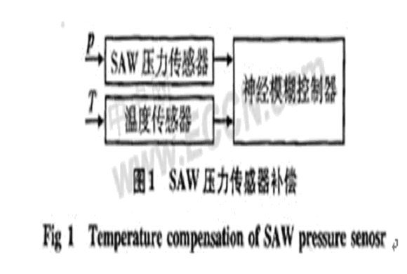 聲表面波(SAW)技術是一門新興熱門研究課題之一,國內外已有溫度、壓力、加速度等傳感器的相關報道。SAW壓力傳感器借助于它無以倫比的性能,諸如:1)數(shù)字號輸出;2)高靈敏度、高分辨力、抗干擾能力強;3)易于大規(guī)模集成。正是由于這些自身的優(yōu)越性,它有著廣泛的應用領域。但美中不足的是SAW壓力傳感器對環(huán)境的要求比較苛刻,SAW振蕩器輸出頻率信號隨著壓力、溫度、磁場等外界因素變化而變化,特別是溫度的影響是測量誤差的主要來源,為保證SAW壓力傳感器高準確度和高靈敏度測量,必須進行有效的溫度補償。本文將神經(jīng)網(wǎng)絡和模糊控制技術相結合,對SAW壓力傳感器進行智能化溫度補償,通過此方法進行的改進,使SAW壓力傳感器能更好地應用到工程領域。