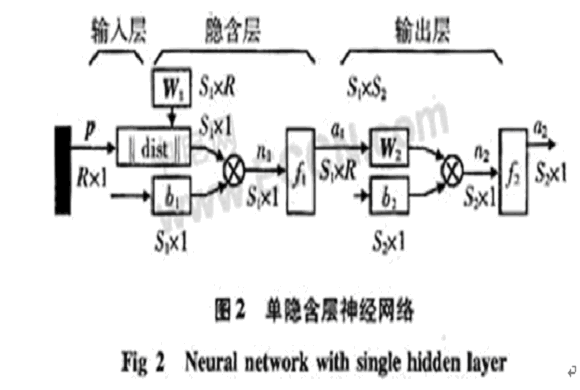 其中,p為輸入矢量,R為輸入矢量維數(shù),S1為隱含層神經(jīng)元個數(shù),S2為輸出層神經(jīng)元個數(shù),W1為隱含層神經(jīng)元權值矩陣,W2為輸出層權值矩陣,b1為隱含層神經(jīng)元閥值,b2為隱含層神經(jīng)元閥值,n1為隱含層輸入節(jié)點,n2為輸出層節(jié)點。f1為S型函數(shù),f2為purelin型函數(shù)。神經(jīng)網(wǎng)絡算法是用于前饋多層網(wǎng)絡的學習算法。如果輸出不能得到期望的輸出,則轉入后向傳播。通過誤差的后向傳播調整各層之間的權系數(shù)。反復輸入樣本序列,直至權系數(shù)不在改變?yōu)橹?,輸出誤差在規(guī)定的范圍之內。算法采用如下改進:1)采用模擬退火法以克服局部最小;2)用奇函數(shù)作激勵函數(shù)和傳播過程中采用新誤差傳播因子完善該算法收斂性問題。