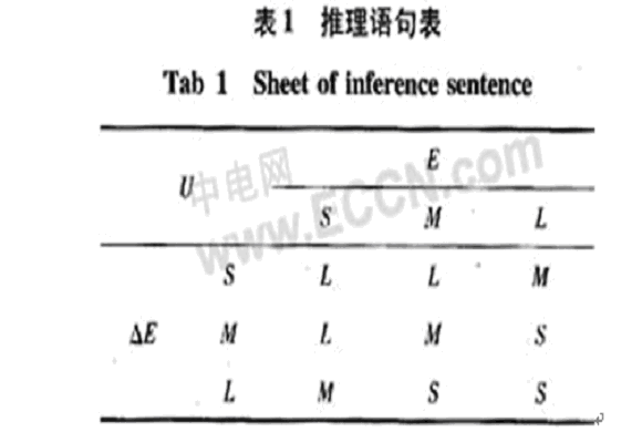 基于神經(jīng)網(wǎng)絡在推理方面不足,故借助于模糊控制強大的推理功能,提取有效的條件語句,進而加快網(wǎng)絡的訓練速度。選取偏差E和偏差變化率△E作為輸入和控制量U作為輸出。偏差E和偏差變化率△E的模糊量分別為大(L),中(M),小(S),創(chuàng)立描述條件推理表格如表1。