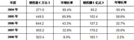 2009年3月5日,中國權威ICT研究與管理咨詢機構賽迪顧問股份有限公司(股票代碼:HK8235)在“2009中國消費電子市場年會”上發布《2008-2009年中國數碼相機市場研究年度報告》顯示:2008年,在全球經濟不景氣的環境下,很多數碼產品的市場需求受到了較大的挑戰。根據賽迪顧問統計數據顯示,2008年中國數碼相機市場銷售量達到923.4萬臺,同比增長8.0%,銷售額達到183.1億元,同比增長2.2%。