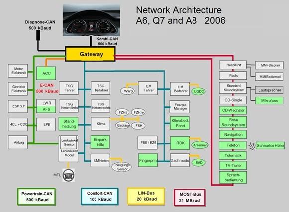 車輛中的大量應用已然轉變成了網絡應用。以往的常見架構(即一個ECU實現一個應用)已經被多個ECU共享的網絡功能所取代。