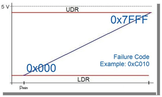 模擬輸出只允許進行信號范圍內(如10-90%)的傳感器信號傳輸,并通過開關將低診斷范圍(LDR)和高診斷范圍(UDR)轉換為故障狀態。因此,其無法傳送更詳細的故障信息。