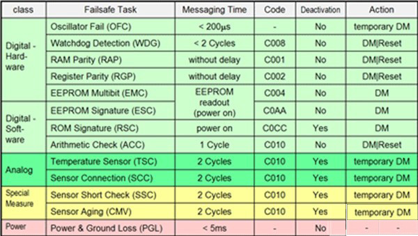 ZMD31150中的臨時DM是一個可選項,在錯誤持續出現時提供可靠的錯誤信息。利用附加信息(如冗余傳感器或進行大量檢查),ECU將決定當前應用能否繼續可靠工作,或者根據錯誤消息必須關斷。