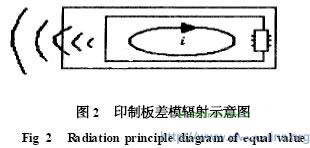 此時為差模輻射??赏ㄟ^減小環路面積S和環路電流i來減小差模輻射。共模輻射可用對地電壓激勵的、長度小于1/4波長的短單極天線來模擬。共模輻射的電場強度為[3]