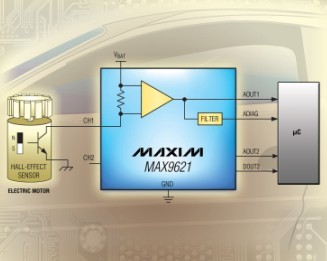 Maxim推出帶有模擬和數(shù)字輸出的雙通道、2線霍爾傳感器接口MAX9621。該器件可通過在模擬輸出端對線性信息對應(yīng)的傳感器電流進行鏡像或通過經(jīng)過濾波的數(shù)字輸出,使微處理器能夠監(jiān)測霍爾傳感器的狀態(tài)。可編程設(shè)置數(shù)字輸出的輸入電流門限。高邊電流檢測架構(gòu)省去了地回路引線,且不會發(fā)生地電位偏移,因而可降低50%的走線成本。MAX9621非常適合用于汽車車身控制器(例如:車窗升降控制器)。