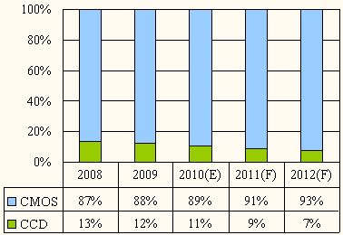 - 2010年全球Image Sensor組件應用市場規模為7.1億美元