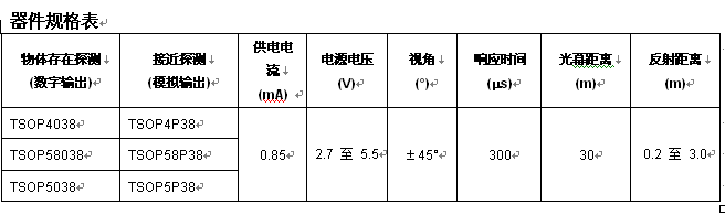 很多其他應用要求反射傳感器不僅能夠探測是否有光,還要能通過測量反射信號的強弱程度判定物體的遠近。除了不能采用固定的探測閾值,還需要來自傳感器的模擬信息。利用TSOP4P38、TSOP5P38和TSOP58P38紅外接近傳感器,可滿足這些要求。傳感器輸出脈沖的長度根據發射器信號做出響應,發射器信號會按照反射自被探測物體的光的數量成比例變化。對于近處的物體,輸出脈沖接近發射脈沖的100%,對于遠處的物體,輸出脈沖會變得更短。