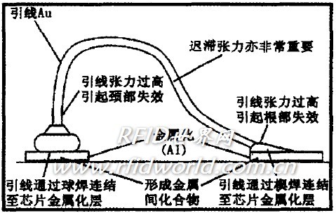 IC卡組裝工藝中,因鍵合引起的失效也是影響IC卡質(zhì)量和可靠性的重要因素之一。鍵合失效主要表現(xiàn)為IC卡電學特征上的不連續(xù),如開路同時伴有短路、漏電等現(xiàn)象,或出現(xiàn)“輸入高”或者“輸入低”的失效。圖給出了與鍵合相關的諸多失效機理。