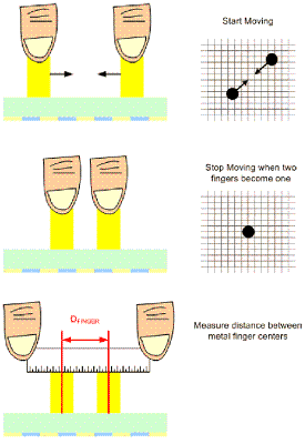 手指間距:手指間距定義為,當(dāng)觸摸屏控制器測量兩只手指的位置時,兩只手指中心點(diǎn)之間在屏幕上的最短距離。手指間距測量方法(圖2),是將兩個模擬或機(jī)械手指置于面板上,然后逐漸拉近兩只手指的距離,直到系統(tǒng)測到兩只手指為一只手指為止。有些觸摸屏供貨商的手指間距是指邊緣至邊緣的距離,有些則是中心點(diǎn)之間的距離。10毫米機(jī)械手指的10毫米手指間距,表明有多只手指觸碰到屏幕,或是手指之間的距離為10毫米,實(shí)際狀況取決于觸控控制器的規(guī)格定義。如果沒有良好的手指間距,就無法設(shè)計(jì)出多點(diǎn)觸控解決方案。對于仿真鍵盤而言,手指間距尤其重要,因?yàn)橐话阍谑褂梅抡骀I盤時,手指在屏幕上的間距通常很短。