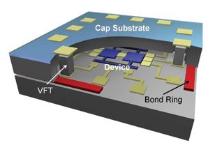 從傳感器的應用來說,有些MEMS器件的封裝必須能夠和環境進行相互影響。例如,在壓阻傳感器內,封裝應力就會影響傳感器的輸出。當封裝中不同材料混合使用時,它們的膨脹和收縮系數不同,因此,這些變化引起的應力就附加在傳感器的壓力值中。在光學MEMS器件中,由于沖擊、震動或熱膨脹等原因而產生的封裝應力會使光器件和光纖之間的對準發生偏移。在高精度加速度計和陀螺儀中,封裝需要和MEMS芯片隔離以優化性能(見下圖)。