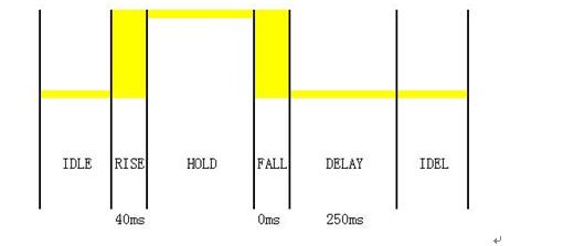圖4是一個(gè)觸摸按鍵應(yīng)用中一次典型的按鍵波形,每個(gè)按鍵按下后,系統(tǒng)都需輸出對(duì)應(yīng)的電壓值以供其他系統(tǒng)檢測(cè)。該應(yīng)用要求響應(yīng)時(shí)間小于等于40ms,當(dāng)按鍵被長(zhǎng)按時(shí),需要一直輸出按鍵電壓,即使按鍵釋放后,仍需250ms時(shí)間保持原有按鍵電壓,之后停止輸出按鍵電壓,進(jìn)入空閑狀態(tài)。系統(tǒng)共包含12個(gè)觸摸按鍵,當(dāng)多個(gè)按鍵被同時(shí)按下時(shí),系統(tǒng)不響應(yīng)。系統(tǒng)低功耗設(shè)計(jì)要求為,系統(tǒng)待機(jī)時(shí)沒(méi)有按鍵操作的平均電流應(yīng)至少小于1mA。
