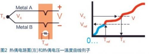 不過,電壓和溫度間是如圖2所示的非線性關系,溫度由于電壓和溫度是非線性關系,因此需要為參考溫度(Tref)作第二次測量,并利用測試設備軟件和∕或硬件在儀器內部處理電壓-溫度變換,以最終獲得熱偶溫度(Tx)。Agilent34970A和34980A數(shù)據(jù)采集器均有內置的測量了運算能力。