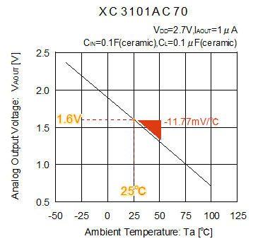 工作電壓范圍在2.7V~5.5V之間,能用鋰離子電池或5V線電壓驅動。消耗電流低到3.5μA(TYP.),最適用于檢測蓄電池設備的溫度。模擬式輸出在-40℃~100℃的范圍內能高精度地輸出模擬電壓(1.600V @ 25℃)。模擬輸出溫度系數為標準的-11.77mV/℃。報警溫度設定為70℃(±4.5℃)、滯后作用(hysteresis)為5℃。